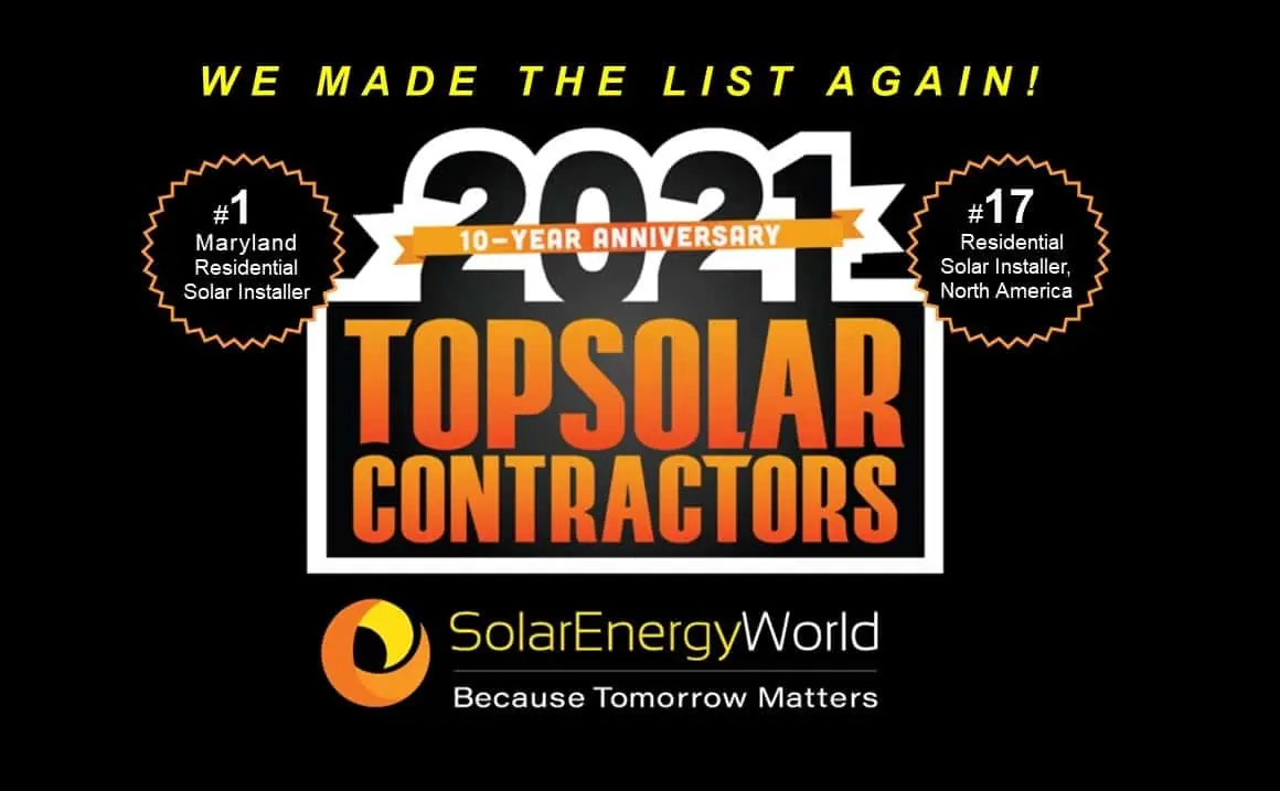 Solar Energy World held on to its number 1 position for residential rooftop installations in Maryland for the 5th year in a row and moved up from number 21 to number 17 for residential rooftop installations in the USA. The company ranks 110 out of a total of 426 solar companies on the list including companies that mainly install large scale commercial and utility contracted solar systems.